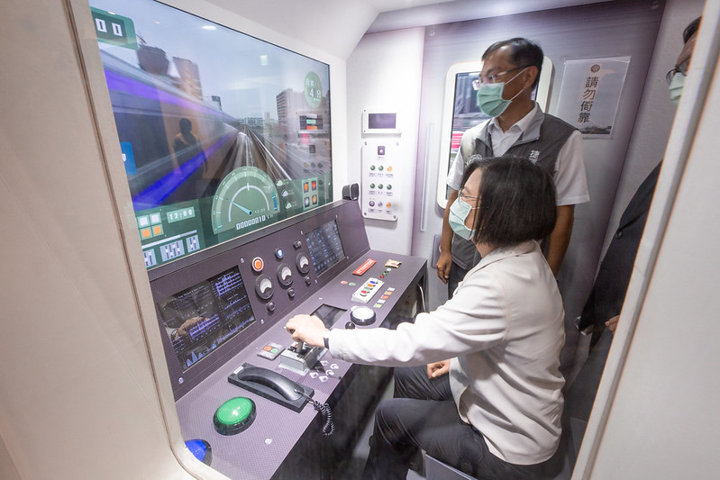 隨後,總統前往「桃園軌道願景館」,聽取導覽介紹桃園軌道史,及軌道技術工程說明,以及由桃園市政府捷運工程局陳文德局長簡報「桃園軌道願景館活化歷程及桃園三心六線軌道建設計畫」。