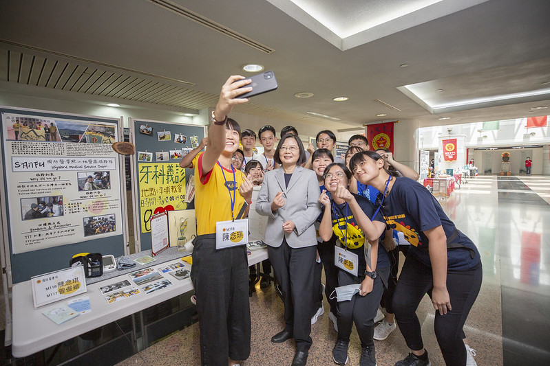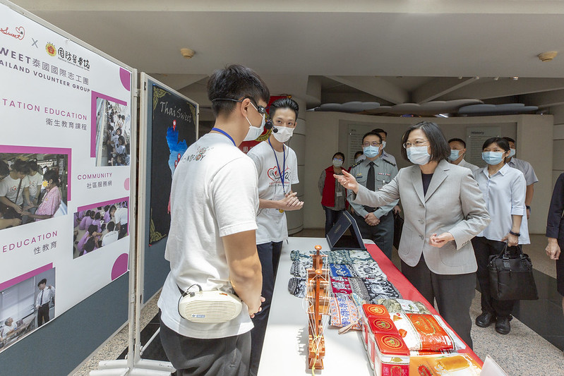 總統也提到,國防醫學院不僅在107年及109年通過教育部推薦「高等教育深耕計畫」,創下軍事院校獲得該項殊榮的首例。經過教育部評估,軍事醫學院的雙語教育水準上,也是軍事院校中的第一名。她剛剛與參與過海外志工團的學長姐們互動,才20多歲的年輕人,既然有好的能力,就要多出去闖一闖,看一看天外有天的世界,相信同學們過幾年後,也能像學長姐一樣出色。