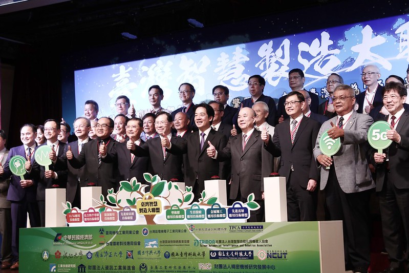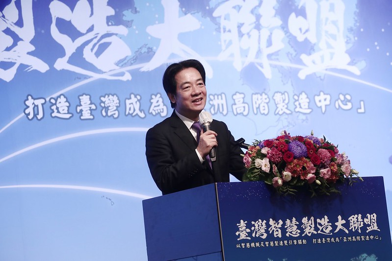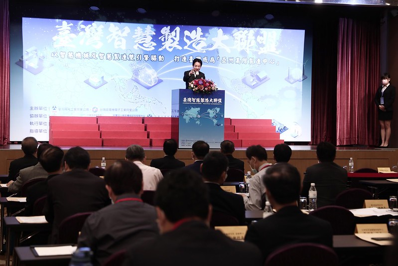 賴清德副總統今(6)日上午出席「臺灣智慧製造大聯盟成立大會」,肯定「台灣區電機電子工業同業公會」及「臺灣機械工業同業公會」相互結盟,並期勉雙方團結合作,為臺灣邁向亞洲高階製造中心共同努力。