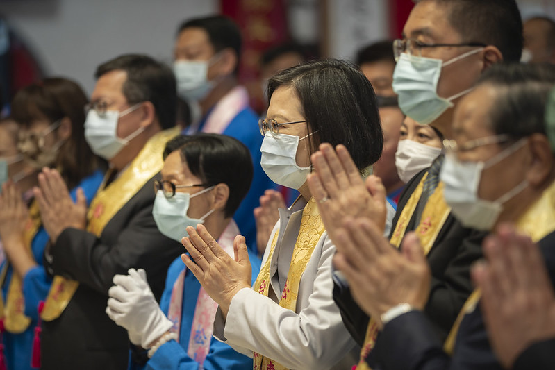 蔡英文總統今(9)日上午參拜松山慈惠堂,祈求臺灣風調雨順、國泰民安。