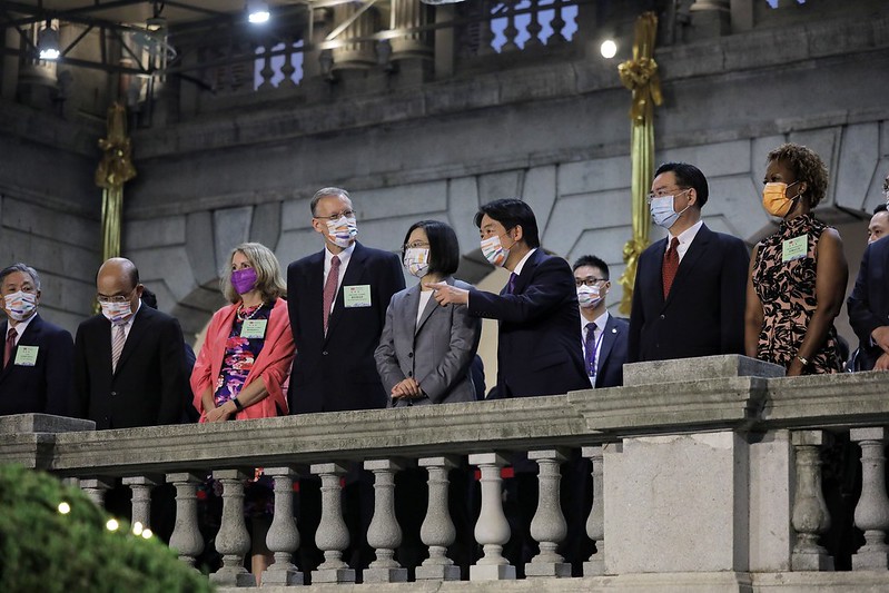 蔡英文總統今(10)日晚間偕同賴清德副總統出席在臺北賓館舉辦的「中華民國109年國慶酒會」,與現場各國駐臺使節、駐臺機構及國際組織代表共同慶賀中華民國109年國慶。