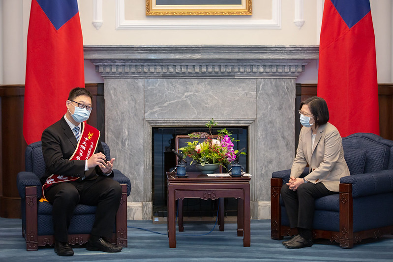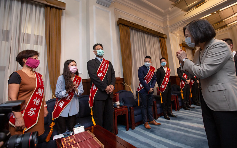 總統表示,創辦「Skills For U」組織的黃偉翔執行長,不斷提倡「技能可以貢獻世界」的理念,讓技職教育出身的人才有更大的揮灑空間;發起「小紅帽」組織的林薇創辦人,非常關心性別、醫療等議題,在臺灣受到「世界衛生組織」(WHO)秘書長不實指控時,第一時間就錄製影片、發表公開信,勇敢反駁。「當時妳的行動,振奮了很多臺灣人」。