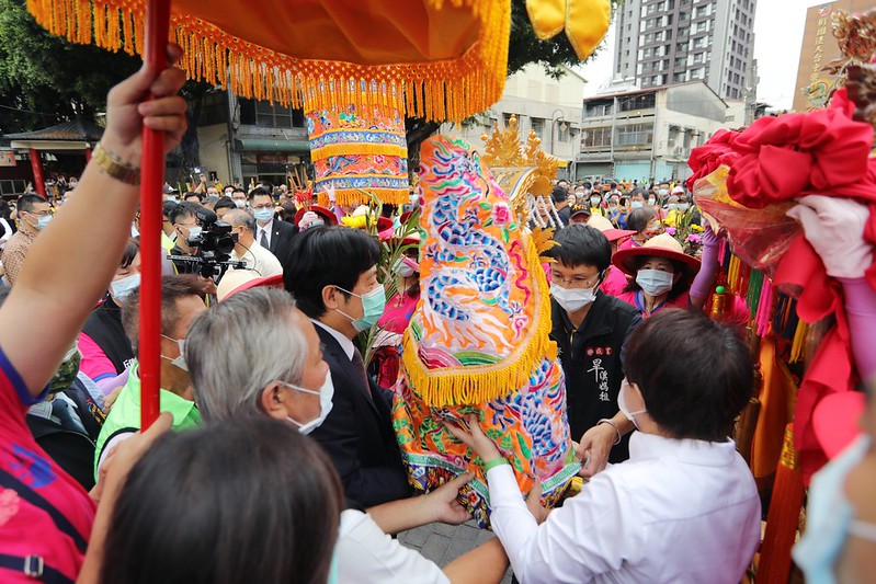 副總統抵達後,以主祭官身分上香、獻花及獻果,祈求媽祖護佑臺灣。隨後在廟方人員引導下,與現場貴賓一同恭請媽祖移駕並上轎安座。