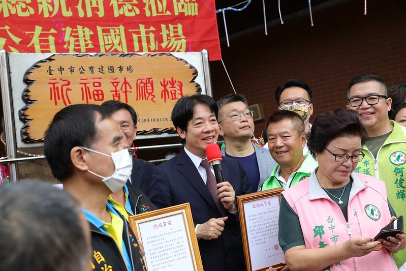 賴清德副總統今(17)日上午出席「臺中建國市場揭牌儀式」,親自祝賀建國市場生意興隆,並肯定其配合政府政策,成功防疫。