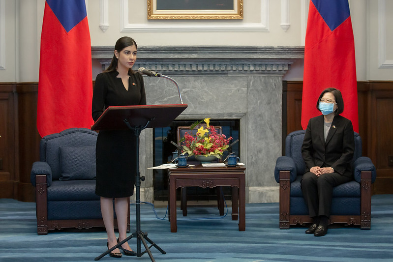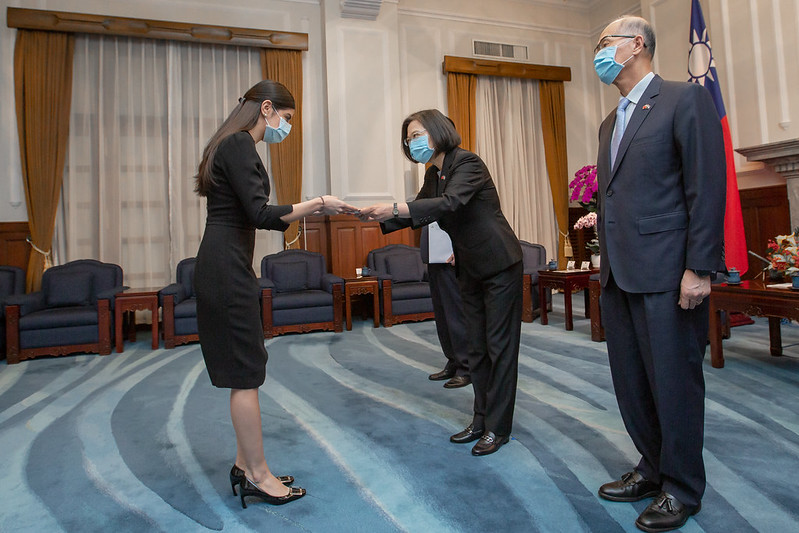 總統提到,李蜜娜大使過去是臺灣獎學金的受獎生,從銘傳大學畢業,我們看到李蜜娜大使的背景,除了感到很親切,對於渠成為大使,也與有榮焉,她要代表中華民國臺灣政府以及人民,表達最誠摯的祝賀。