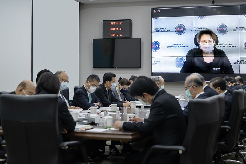 最後,總統也表示,除依據蘇院長上週四在行政院院會指示,加強在策略性領域的供應鏈合作之外,也要積極落實召開「臺美經濟對話」,爭取恢復「臺美貿易暨投資架構協定」(TIFA)商談,及開啟「臺美雙邊貿易協定」(BTA)諮商,為雙方合作奠定制度化基礎。同時,也要充分利用「臺美基礎建設融資及市場建立合作架構」,積極推動臺美在新南向及中南美國家建立供應鏈合作網路。