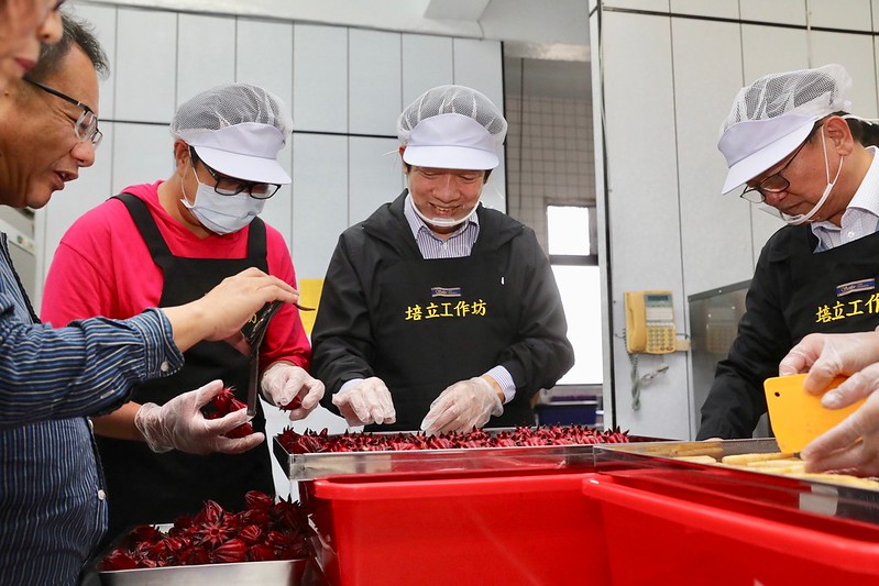 副總統抵達後,首先參觀培立工作坊的環境,並親自體驗製作鳳梨及洛神花果乾,接著觀看學員的舞蹈表演,並聽取社工人員簡報協會服務項目及展望。