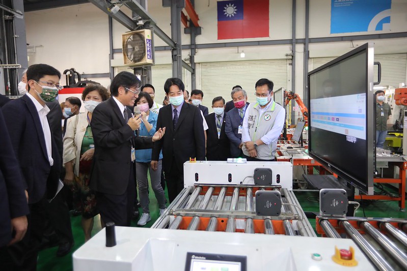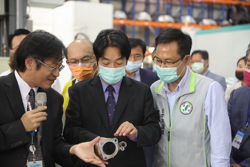 賴清德副總統今(24)日上午前往臺中參訪「智慧製造試營運場域」及「全球智慧機械發展中心」,期勉業者在面對臺灣地緣政治變化或產業鏈移轉,甚至COVID-19的挑戰時,都能將衝擊視為動力、把危機當作轉機,只要大家團結努力,相信未來臺灣機械業在生產製造上,一定會變得更精準,更有效率,也會讓臺灣的產業能夠更好。