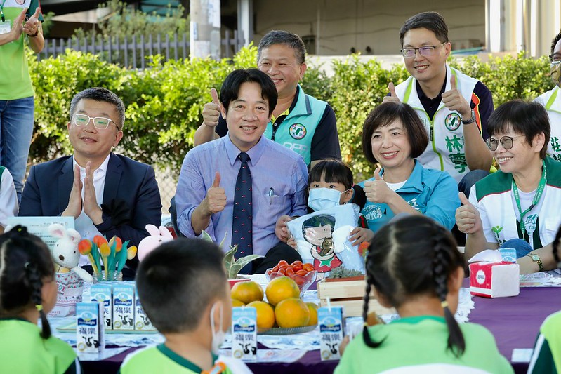 賴清德副總統今(24)日下午前往臺中參訪「家扶大里非營利幼兒園」,與小朋友們一起午茶,並進行互動問答,共度美好午後。