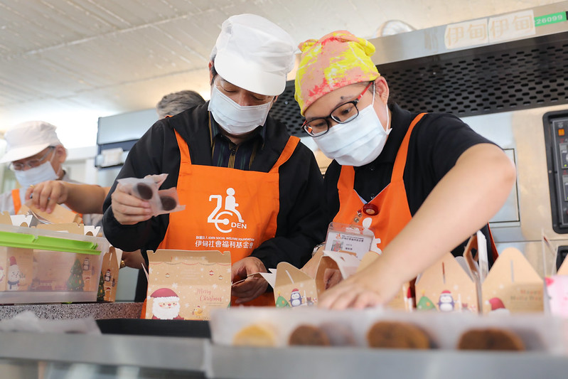 隨後,副總統與庇護員工一同製作餅乾及拿鐵咖啡,體驗手工餅乾從塑型、烘烤、封口到禮盒包裝的製作過程,並學習如何打奶泡、做出完美的拿鐵咖啡。