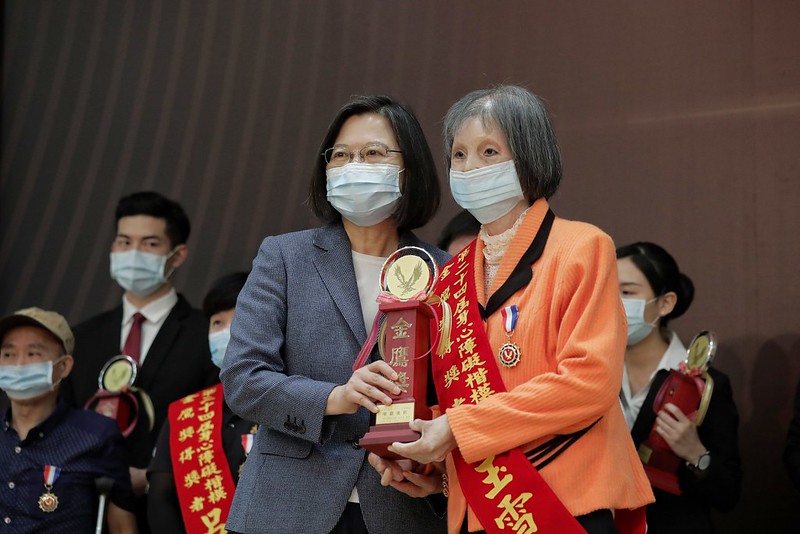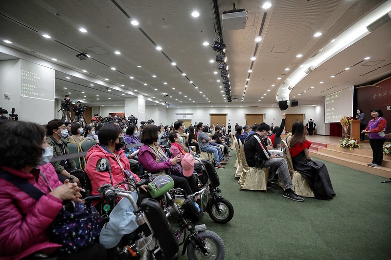 談及對身心障礙朋友的照顧,總統指出,這幾年來,透過各類獎項的表揚,她在總統府常跟身心障礙朋友見面。政府也持續推動各項政策,來提供身心障礙朋友更好的照顧。像是長照2.0上路之後,把49歲以下的失能身心障礙者,納入服務對象。我們調高了對身心障礙福利機構的補助,幫助減輕經營負擔。對於使用日間照顧服務的身心障礙朋友們,我們也放寬申請生活補助的條件,讓更多人可以受益。