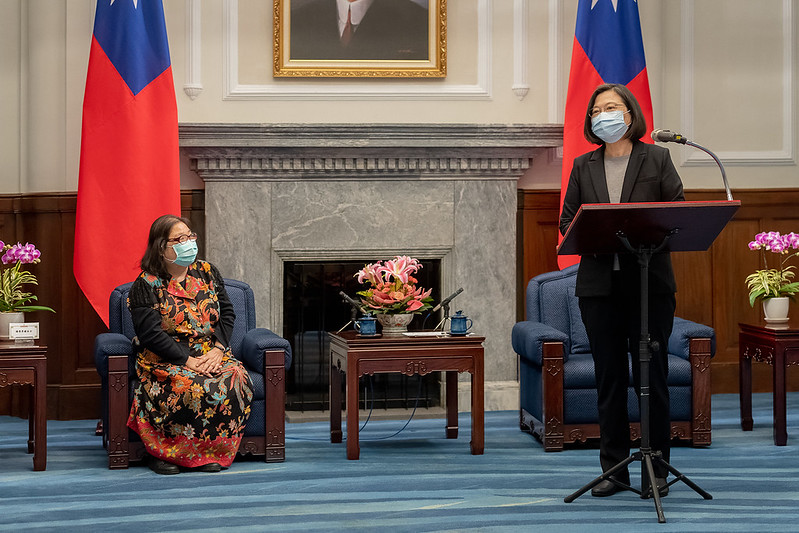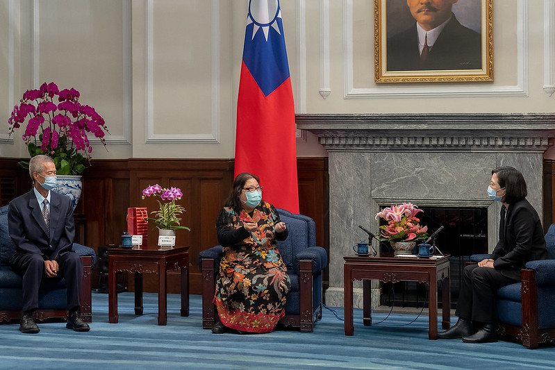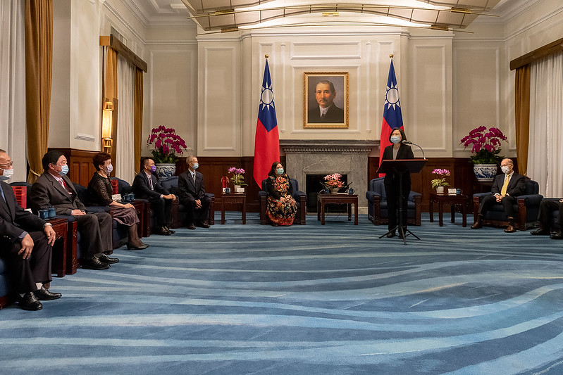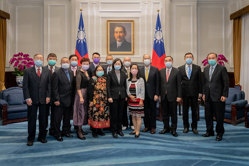 訪賓一行包括臺灣更生保護會董事長邢泰釗等,由法務部長蔡清祥陪同,前來總統府晉見總統,總統府秘書長李大維也在座。