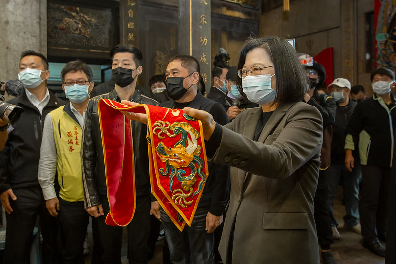 總統說,這段時間以來,全世界都在稱讚臺灣,因為臺灣不只穩住防疫,經濟方面也是穩定成長。她認為,這除了要歸功臺灣人的團結,也要感謝神明的保佑。