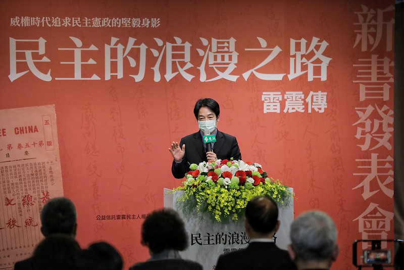 賴清德副總統今(10)日下午出席《民主的浪漫之路:雷震傳》新書發表會,感念雷震先生對於臺灣民主的犧牲及貢獻,並期盼未來能持續守護及深化臺灣民主,讓臺灣民主在國際上發光發熱。他也希望臺灣的故事,能激勵仍在追求民主自由地區的人民,成為他們繼續追求民主、不放棄理想的力量。