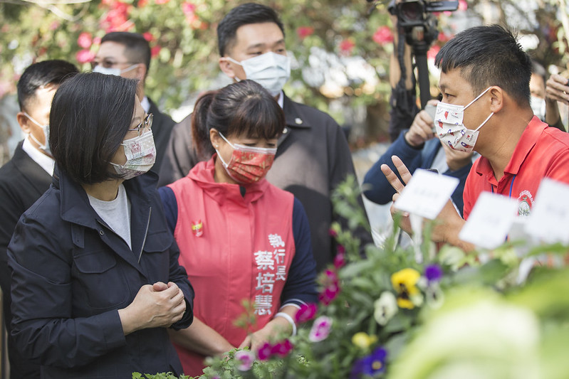 總統參觀時,受到在場民眾、花農熱情歡迎,總統也與他們親切互動,現場氣氛溫馨活絡。