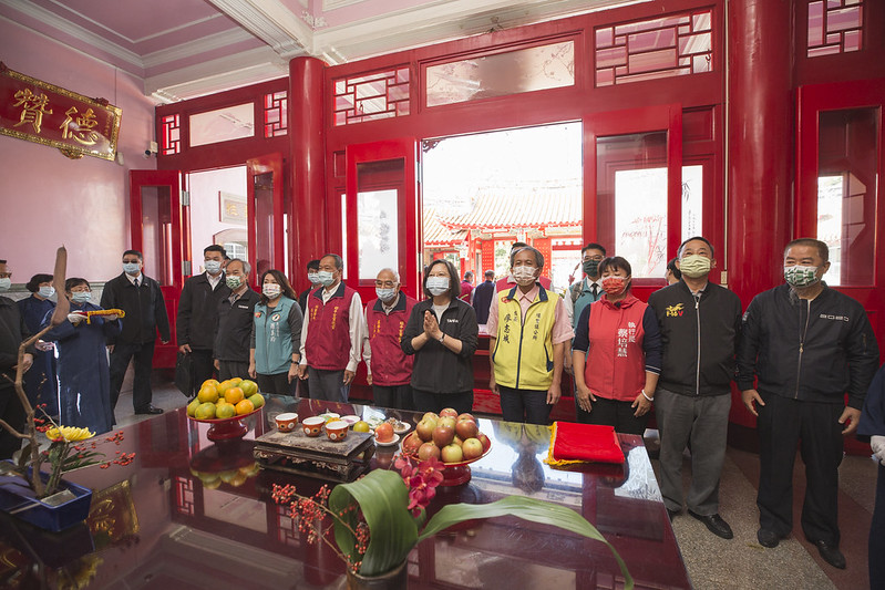 總統於「恆吉宮」參拜時致詞表示,這是她今年第二次來到「孔子廟育化堂」和「恆吉宮」參拜。第一次是今年初,現在已經是12月了,2020年即將要結束,她來這裡跟大家致意,可以算是有始有終。
