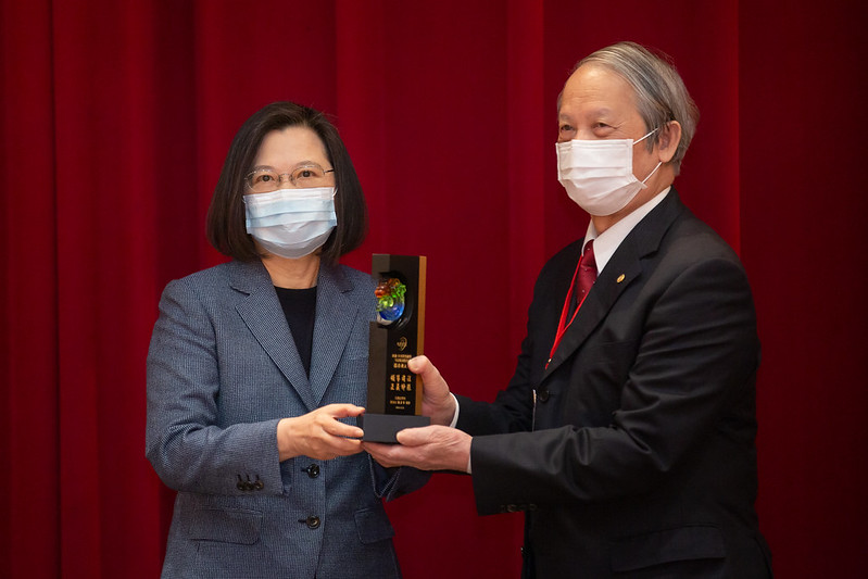 隨後,總統也親頒獎座予前司法院長、台灣法學會榮譽顧問賴浩敏,表彰他對促進法學發展的卓越貢獻。