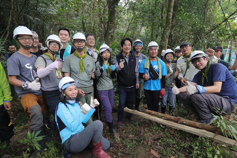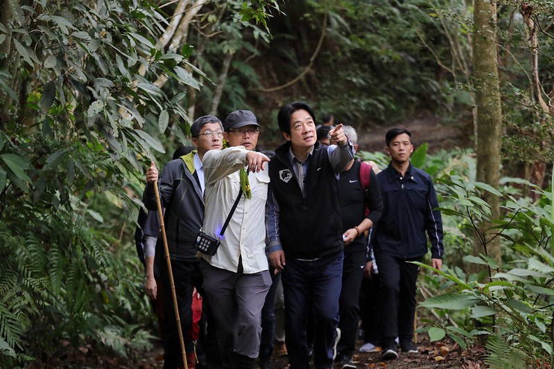 之後,副總統步行前往距離清河堂約1公里的古道,在千里步道資深步道師李嘉智與徐銘謙講解示範下,體驗手作步道;沿途也由荒野保護協會解說老師張訊竹與陳紹忠導覽解說文史與生態環境,進行步道走讀。