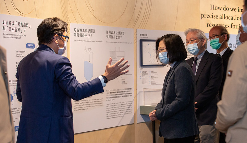 總統抵達後,首先參觀「民生公共物聯網特展」,聽取有關地震、水資源、空氣品質、防救災,4個民生領域的物聯網系統介紹。