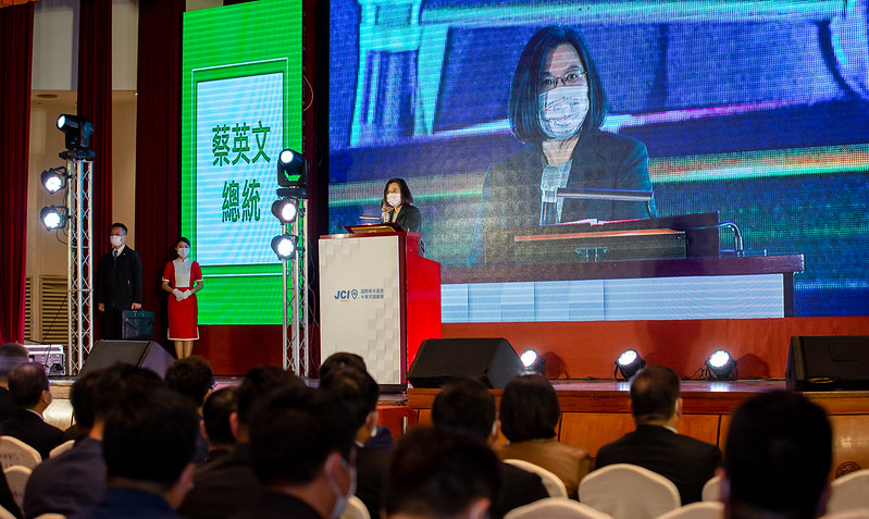 總統致詞時首先祝大家新年快樂,並表示,前天我們剛一起迎接2021年,回顧她做總統4年多來,青商會真的是她常常互動的團體。從2016年以來,柯智寶前總會長、侯宗延前總會長、李秉昆前總會長、林恩億前總會長、王國贊前總會長,都邀請她和陳前副總統、賴副總統參加活動,或是帶領青商會夥伴到總統府拜訪。現場的蔡世寅前總會長、許又銘前總會長、陳家濬前總會長,也都是她很熟悉的好朋友,提供很多寶貴的意見。