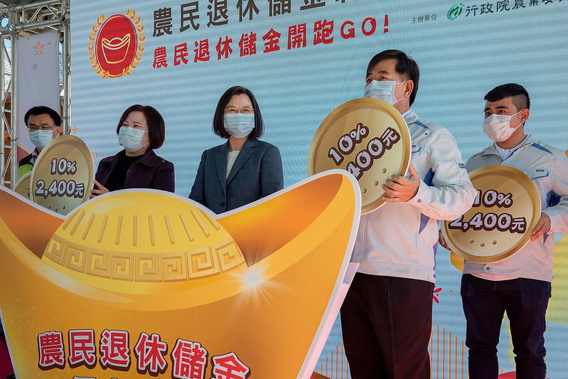 蔡英文總統今(4)日上午前往高雄出席「農民退休儲金制度開辦典禮」時指出,《農民退休儲金條例》不僅代表退休制度的全面建立完成,更讓「從農」成為一個可以做到退休,安心養老的職業,期盼吸引更多青年返鄉從農,為在地農業注入新活水。