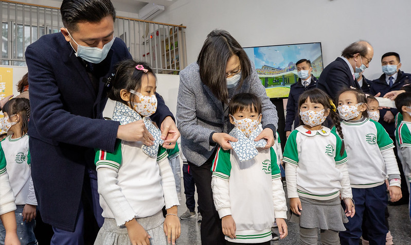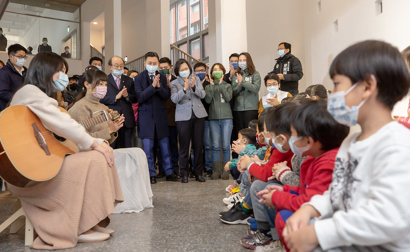 總統抵達後,首先欣賞三民附幼學童表演,贈送圍巾給小朋友們,並聽取新竹市長林智堅「新校園運動」及新竹市政府教育處長沈靜濤「營養午餐」簡報,以及視導附幼校區。