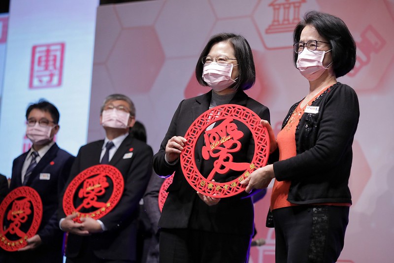 總統致詞時表示,今天雖然室外氣溫很低,但室內充滿溫暖,氣氛「燒滾滾」。她要感謝總盟每一年的號召,讓大家在農曆新年前,團聚在一起吃尾牙。同時,她也要特別感謝與會單位,在過去一年配合防疫,在社福團體跟弱勢族群內,協助宣傳政府的防疫措施,發揮了組織的力量,共同團結對抗疫情,「你們都是我們防疫國家隊的英雄。」