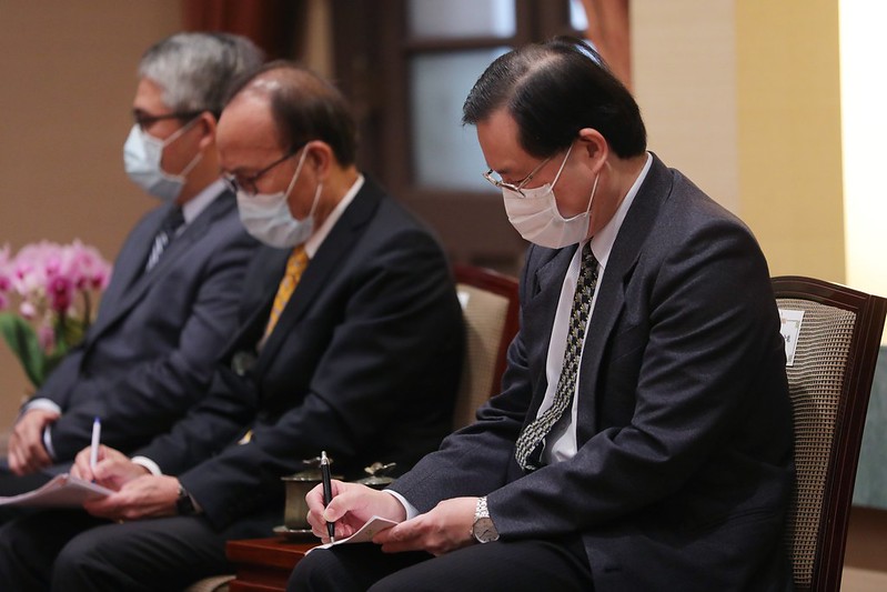 訪賓一行由行政院副院長沈榮津、內政部次長花敬群、農委會副主委陳添壽及經濟部次長林全能陪同,前來總統府晉見總統,總統府秘書長李大維也在座。