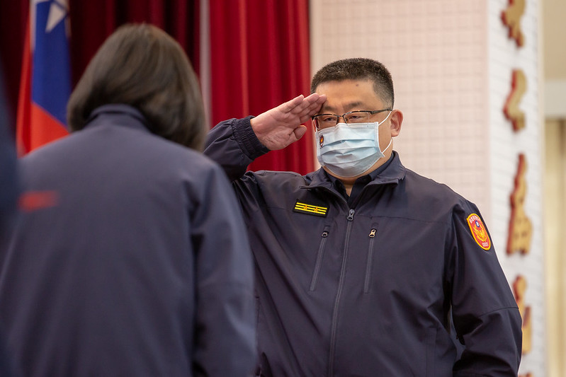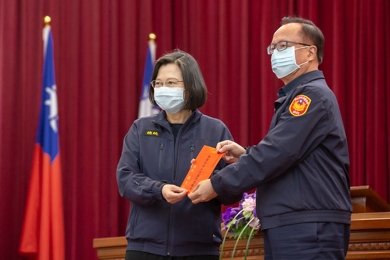 隨後,總統頒發109年維護治安工作獎勵金予各警察機關及學校受獎代表,慰勉員警們的辛勞。