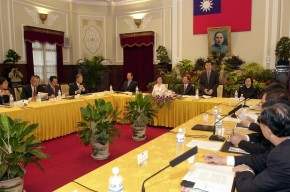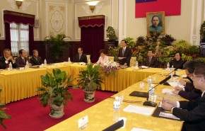 陳總統水扁先生今天上午在總統府與企業界領袖及智庫代表座談,除聽取中華經濟研究院董事長蕭萬長所作「再造台灣經濟的新政」專題報告外,並針對國內經濟現況與未來振興策略進行意見交換,會後總統作出七點裁示,並邀請蕭董事長擔任「總統經濟顧問小組」召集人。