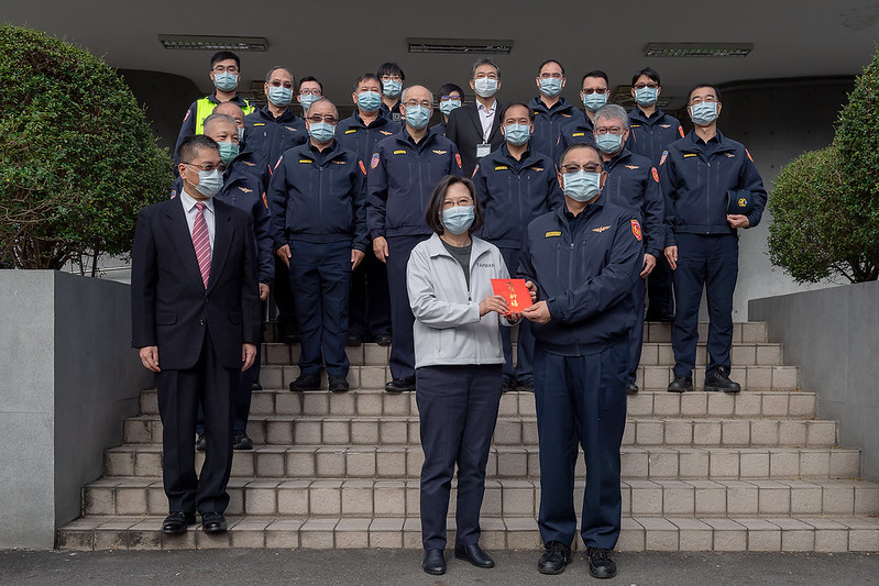 隨後,總統由內政部長徐國勇與警政署長陳家欽陪同,前往「內政部警政署國道公路警察局」,除感謝警察同仁在春節期間堅守崗位、守護治安,也致贈加菜金表示慰勉之意,由公警局局長楊春鈞代表接受。
