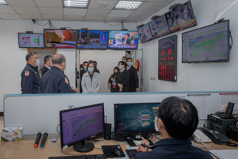蔡英文總統今(10)日上午前往新北市泰山區「高速公路局交通控制中心」慰勉工作同仁,感謝大家堅守崗位、用心投入,讓用路人可以有一個安心的新春之旅。