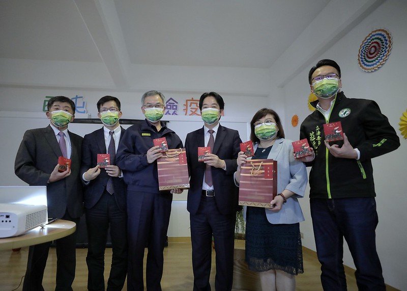 由於今天適逢西洋情人節,副總統也致贈集中檢疫所的同仁巧克力禮盒,感謝他們犧牲年假,也犧牲情人節,奉獻給全國民眾及臺灣社會。此外,副總統也致贈總統府福袋,祝福大家平平安安、順順利利、健康圓滿。