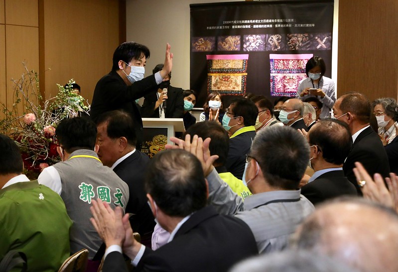 副總統接著說,剛才在簡報中的刺繡作品很精緻,不論是金蔥、銀蔥,或各種宗教文物,都非常珍貴,也延續了傳統的歷史故事;但因為科技的問世,加上低價的競爭,因此精緻的手工刺繡無法在市場上生存。為了要改善這樣的情況,他希望臺南市政府及各界能夠支持,讓刺繡或宗教文物的技術,可以逐步恢復過來。