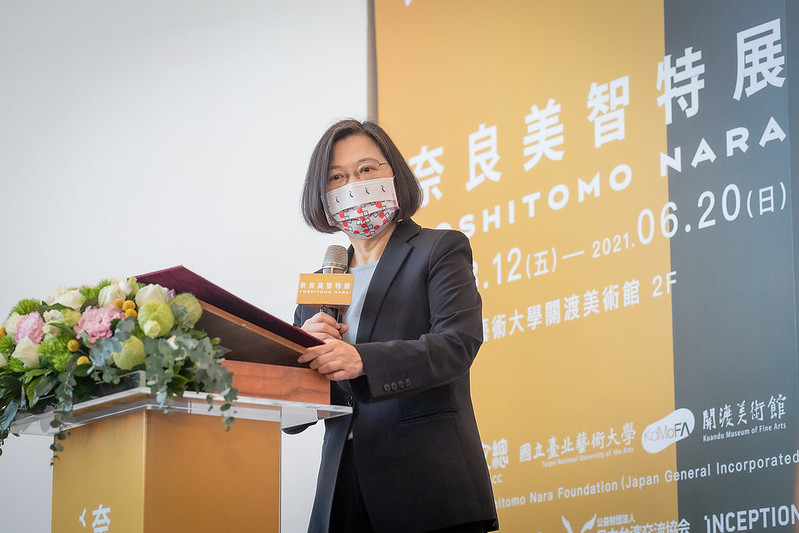 總統抵達後,首先參觀奈良美智特展;隨後在開幕記者會致詞時表示,她期待了很久,第一次在臺灣舉辦的奈良美智特展,終於要開幕了,這陣子她在Twitter上,看到奈良美智先生不斷分享他在臺灣隔離和布展的種種心得。總統也提及前幾天她與奈良美智會面的互動經歷,並表示因為有機會跟他見面,讓她在看展的時候,有更深一層的感受。