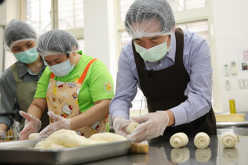 副總統抵達後,首先聽取自閉兒社會福利基金會陳翔宇副執行長簡報該會服務項目,以及愛肯樂活工場工作訓練及流程設計等;副總統也體驗饅頭製作過程,包括壓麵、切割及整形,並親切與學員們互動對談。