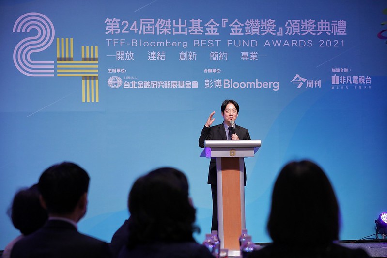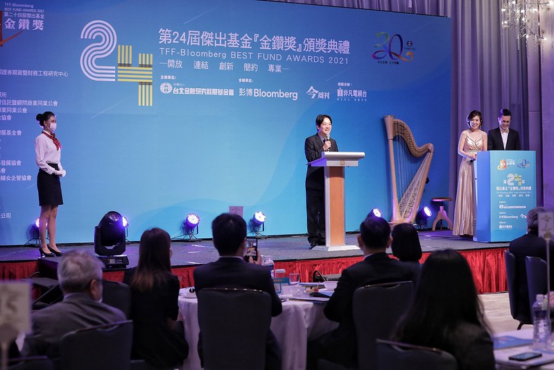 賴清德副總統今(18)日下午出席「第24屆傑出基金『金鑽獎』頒獎典禮」,肯定台北金融研究發展基金會秉持保護投資者的核心價值,延續一貫「公平、公開、公正」審查基金績效表現,且號召參與及得獎單位從事公益活動,以實際行動關懷社會。