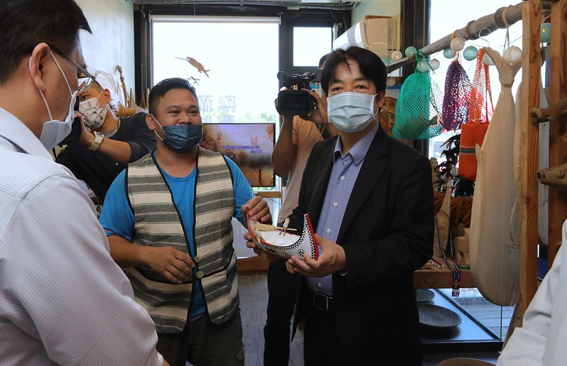 副總統抵達波浪屋後,由原住民族委員會主委夷將‧拔路兒Icyang‧Parod陪同,逐一走訪群拼板舟工作室、拉日革安攤位、原民會Ayoi阿優依店舖及法拉撒工坊等特色店家,參觀蘭嶼達悟族拼板舟、排灣族皮革獸骨工藝品、月桃葉帽等文創手作小物及實木雕刻藝品等,對原民朋友的創意美學與傳統文化,留下深刻印象。