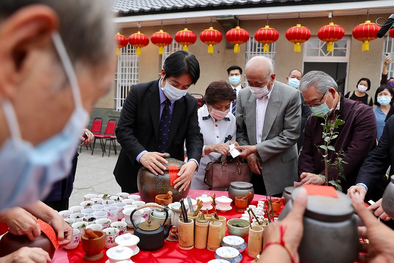 隨後,副總統也在王家三合院中,與王家第二代「四叔」王佳辰先生等共同進行封茶儀式,在茶罐封條上簽名留念,透過封茶儀式,見證國本農場80週年的感動。