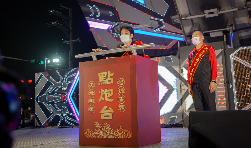 副總統也與桃園市長鄭文燦、龍德宮興建委員會主任委員洪村騫共同擔任起馬炮點炮官。現場在起馬炮開響後,恭送媽祖起駕,為遶境揭開序幕。