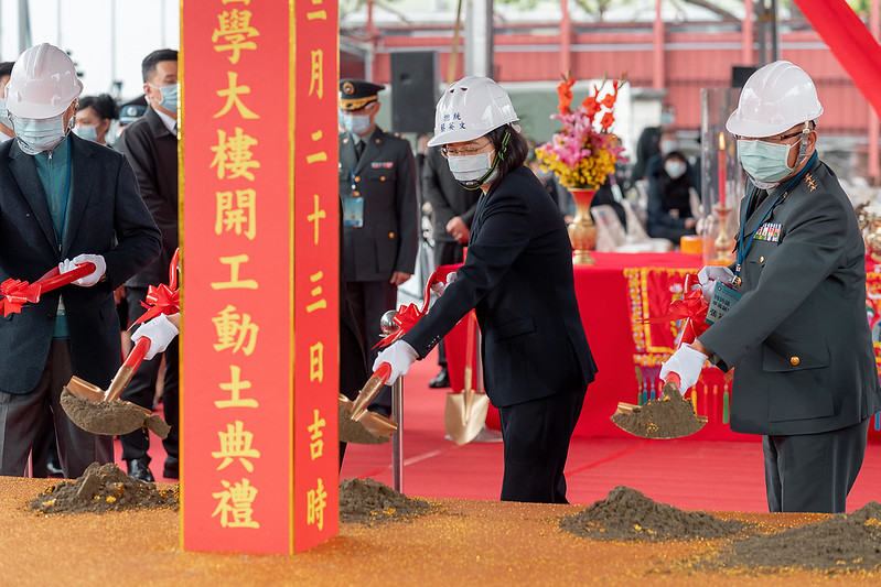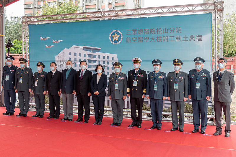 蔡英文總統今(23)日上午出席「三軍總醫院松山分院航空醫學大樓開工動土典禮」時,針對昨日在屏東牡丹外海兩架F-5E戰鬥機事故,向殉職飛官羅尚樺中尉家屬表達最沉痛的哀悼,也已指示國防部,務必要全力搜救潘穎諄上尉,並且釐清事故原因。她也強調,今天興建的航空醫學大樓,除了表達政府對軍陣醫學的重視;未來建成之後,亦可強化地區長照需求,讓三總的醫療能量能更進一步成長。