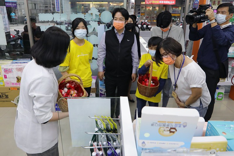 隨後,副總統也與大家拜訪附近藥局、郵局及火鍋店,並分送彩蛋與祝福。