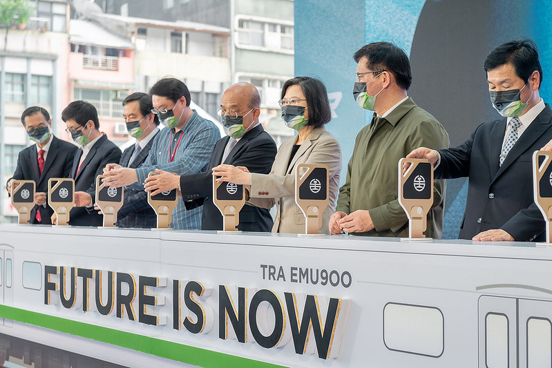 隨後,總統與現場貴賓一同進行啟動儀式,並參觀EMU900型電聯車。
