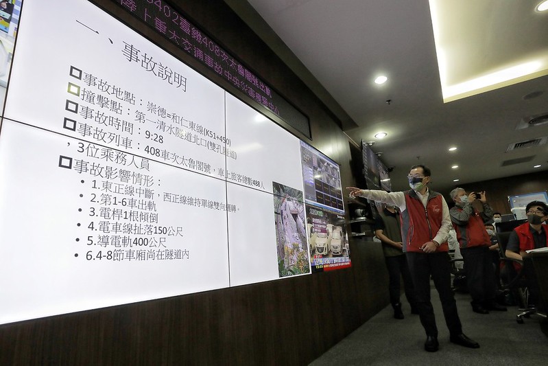 臺鐵太魯閣號今(2)日上午於花蓮清水隧道發生重大事故,蔡英文總統下午至臺北車站視察「臺鐵408次太魯閣號出軌陸上重大交通事故中央災害應變中心」,表示政府會持續盡全力搶救,並全力協助死傷者家屬。同時,總統也指示相關單位在最短時間內調度搶修交通,並務必徹查事故原因,希望罹難者安息、傷者早日康復。