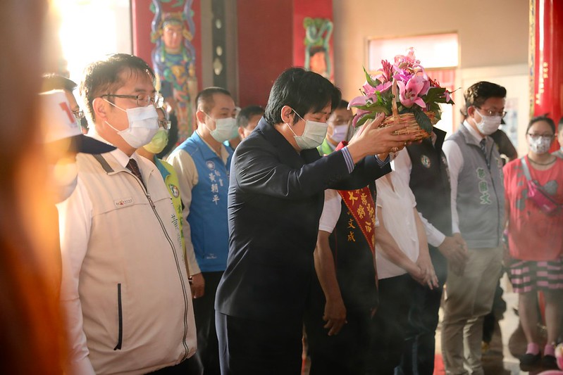 賴清德副總統今(11)日下午前往臺南參拜「新營大將公廟」,祈求大將公李府元帥保佑臺灣國泰民安、風調雨順、天降甘霖,讓疫情早日過去,也讓民眾的生活能回復正常,民生繼續樂利。