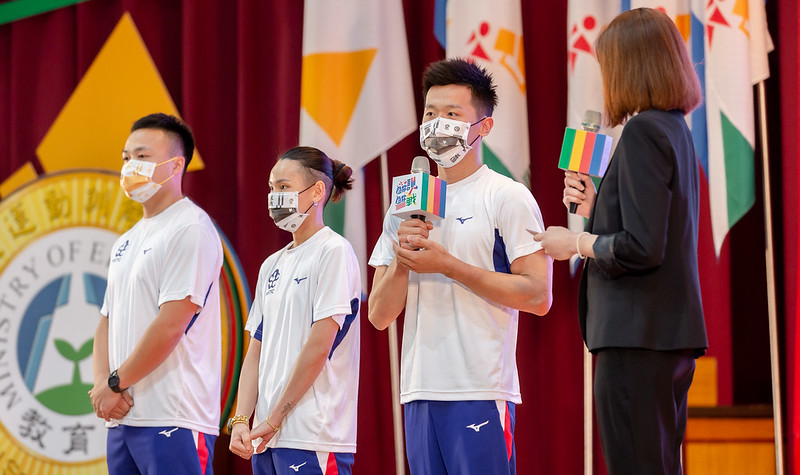 總統提到,從去年開始,因為疫情的影響,國際體育競賽多了很多變數。選手平常要在不確定中維持訓練,出國比賽也需要做好防護,忍受隔離的辛苦;但是大家都堅持下來了,不但堅持,還用盡全力持續爭取最好的成績。像是前一陣子,「小戴」戴資穎和羽球選手們,通過重重的考驗,在泰國拿下冠軍,就大大地振奮了國內的球迷。