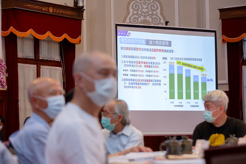 接著,總統與環團代表共同聽取經濟部「能源轉型到淨零轉型」簡報,並進行意見交流。