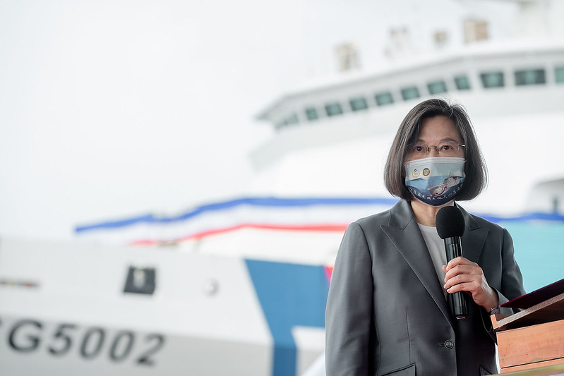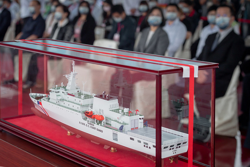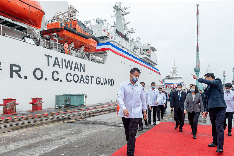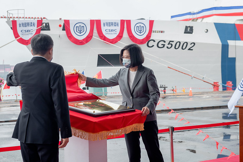 蔡英文總統今(29)日上午前往高雄出席「嘉義級巡防艦首艦嘉義艦交船暨第2艘新竹艦命名下水聯合典禮」時表示,一個月內海軍萬噸級「新型兩棲船塢運輸艦」下水,以及海巡署4,000噸級巡防艦「嘉義艦」交船,代表政府有決心及信心落實國艦國造,強化國防自主的政策。今年起海巡艦艇舷側新增「TAIWAN」字樣也會陸續完成塗裝,不僅可以讓海巡同仁更清楚辨識、更安全執法,更是代表中華民國臺灣,展現精實訓練、捍衛藍色國土的決心。