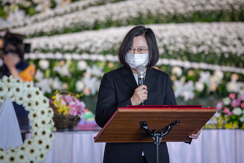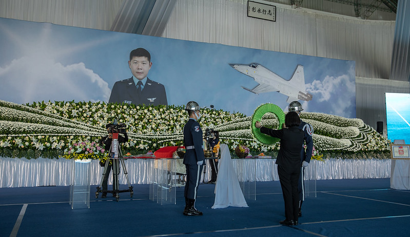 總統致詞時表示,今天我們抱著最不捨和沉痛的心情, 一起追思穎諄。她代表國人感謝穎諄,對守護國家安全的努力和貢獻。