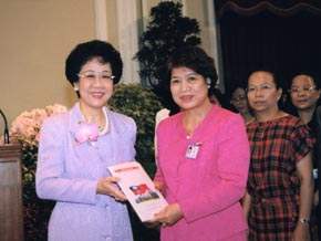 副總統表示,「愛心寶貝婦女聯誼會」經過一年的努力,認養災區兒童已超過五百位,等於一年創造了六百萬元以上的產值,因此她特別感謝大家的愛心及支持。
